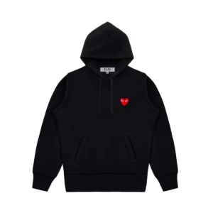 Black CDG Hoodie with Small Red Heart The Black CDG Hoodie with Small Red Heart is a minimalist masterpiece from