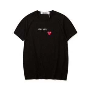 The CDG Oh Yes Black Tee Shirt is a bold expression of streetwear fused with contemporary high fashion. Designed by