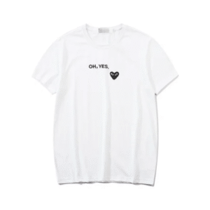 Elevate your streetwear collection with the CDG Oh Yes White Tee, a must-have piece that blends simplicity with bold branding.