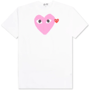 Elevate your casual wardrobe with the Comme Des Garçons Play Red Emblem And Pink Heart T-Shirt, a perfect blend of