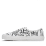 The crisp white canvas upper creates a versatile foundation, making these sneakers easy to pair with any wardrobe. Whether you’re styling them with casual jeans, smart trousers, or street-ready fits, the bold black message accents bring a statement-making edge. True to Vans’ Authentic legacy, the shoe retains its classic low-top silhouette with sturdy canvas fabric and durable rubber waffle outsoles for superior grip.