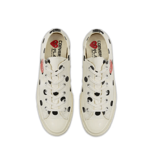 Whether you’re a fan of high-fashion collaborations or simply want sneakers that stand out, the CDG Play Converse Polka Dot Red Heart Chuck Taylor All Star ’70 Low Sneakers are the perfect choice. With their blend of playful design and classic Converse heritage, these shoes elevate streetwear fashion to the next level.