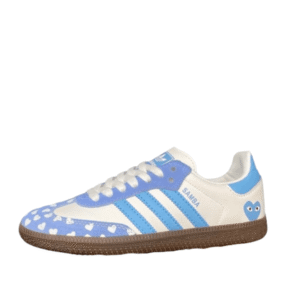 The Adidas Samba x Comme des Garçons Sky Blue is a stylish collaboration that blends sportswear heritage with avant-garde fashion