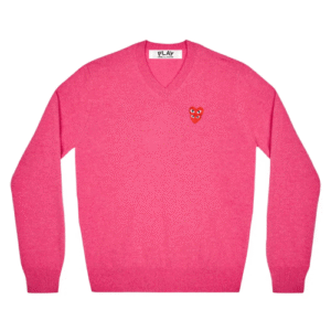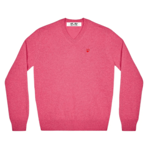 Elevate your casual wardrobe with the Play Comme des Garçons Mini Heart V Neck Sweater Pink, a timeless piece that